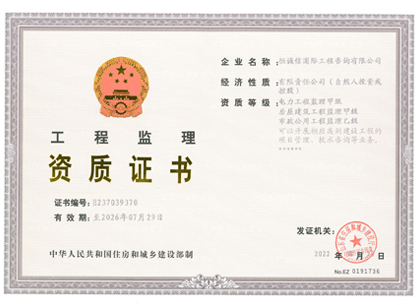 • 工程監(jiān)理甲級資質(zhì)證書