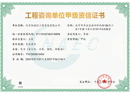 • 北京公司工程咨詢單位甲級資信證書