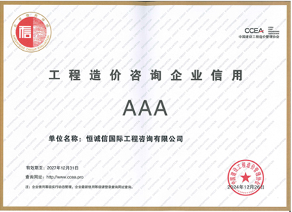 • 國際公司工程造價咨詢3A信用等級