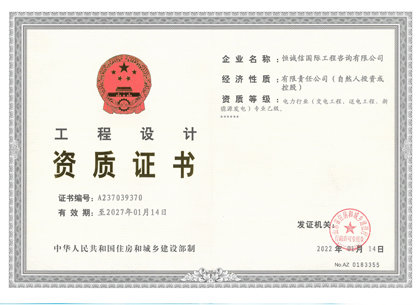 • 電力設(shè)計資質(zhì)證書