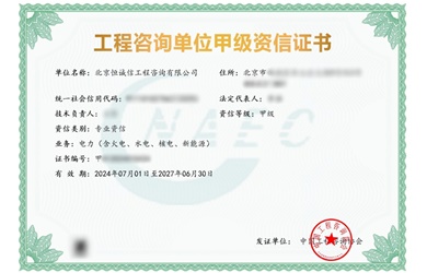 北京恒誠(chéng)信工程咨詢公司榮獲工程咨詢甲級(jí)資信